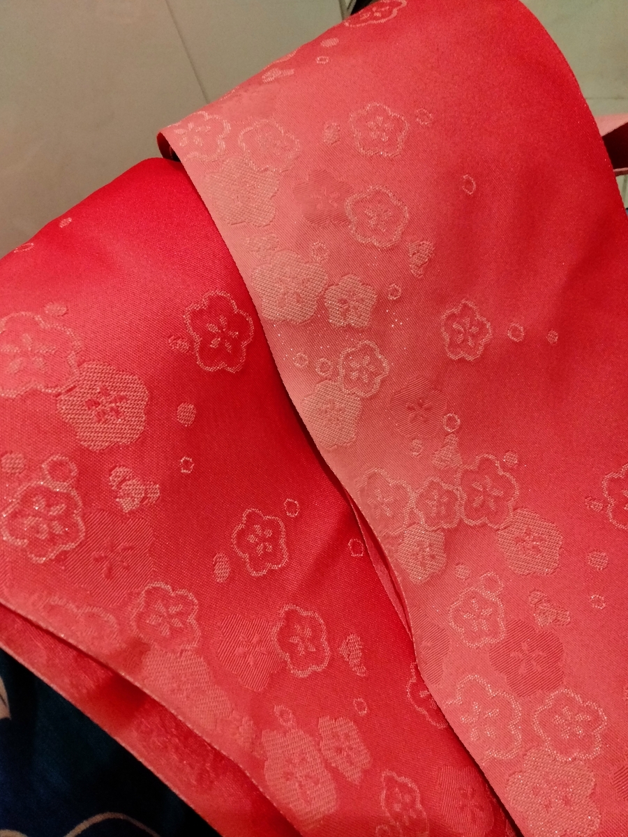 娘のピンク色の浴衣と揃えて購入したので、帯は少しラメの入ったピンクのグラデーション✨