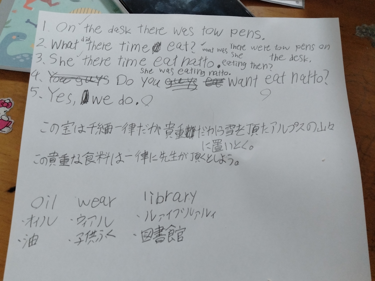三語短文は、たぶん自分で『あれ?』と思って意味を調べ直し作ったと思われます🤔