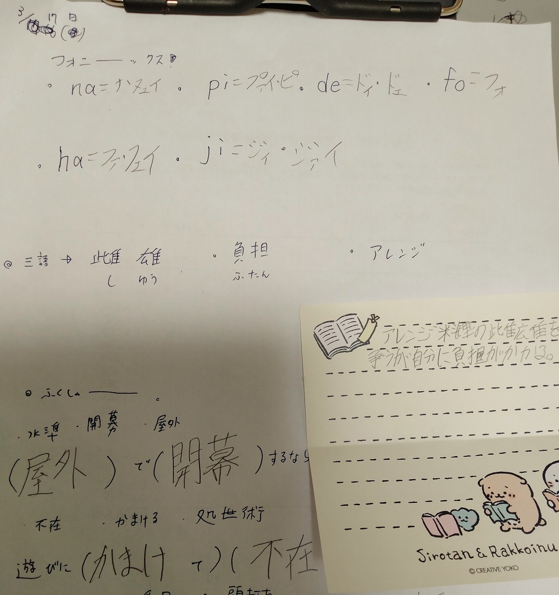 母が三語短文のお題を書き写す前に、メモ帳に作っていました😊