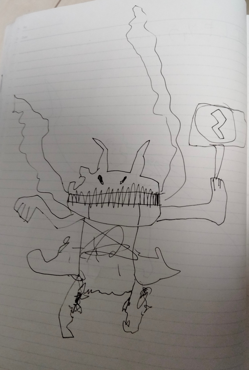 休憩中に『ポケモンの進化した姿のさらに先を考える!』と言って三語短文ノートに『エレキング』なるものを描いてました。