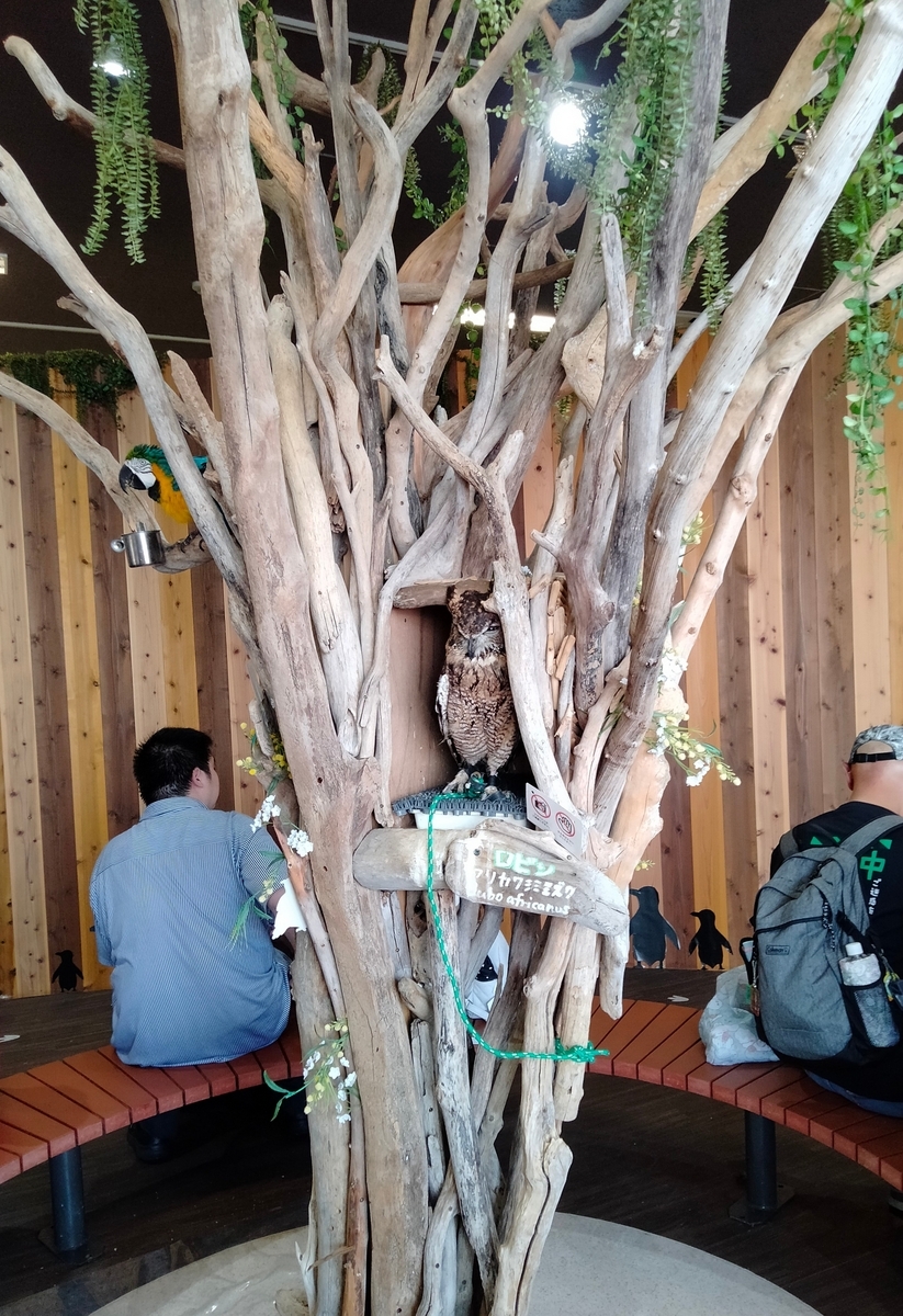 ミミズク、オウム、鷹にリクガメがお出迎えしてくれました。そういえばメインキャラクターは白イルカとカワウソだったな。なんでだ。