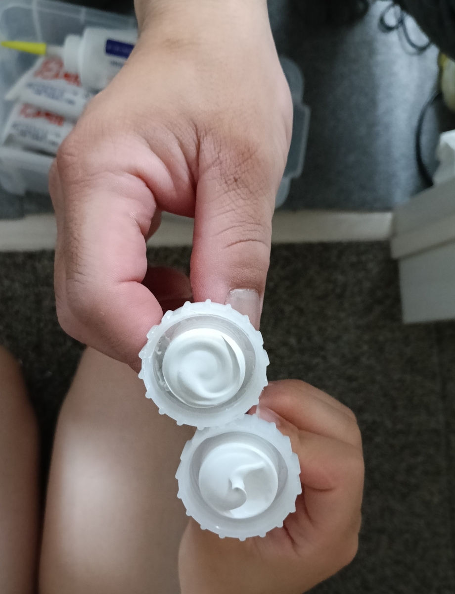 チューブで埋めたら、指じゃなくて濡れティッシュで...と説明しながら、二人でわちゃわちゃ🔻
