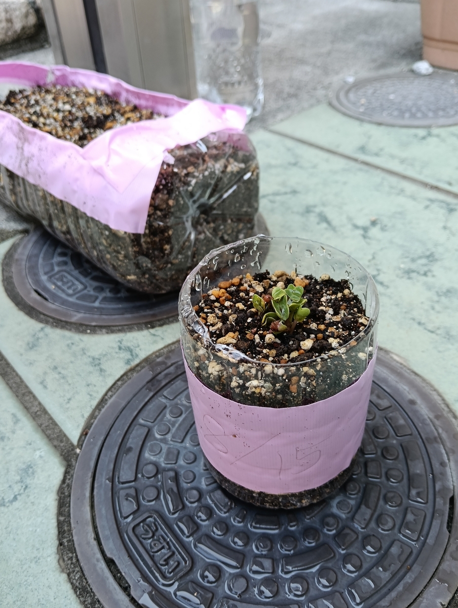 大根の芽が出たー!と喜んでいた娘。気が付けば玄関に色々と...